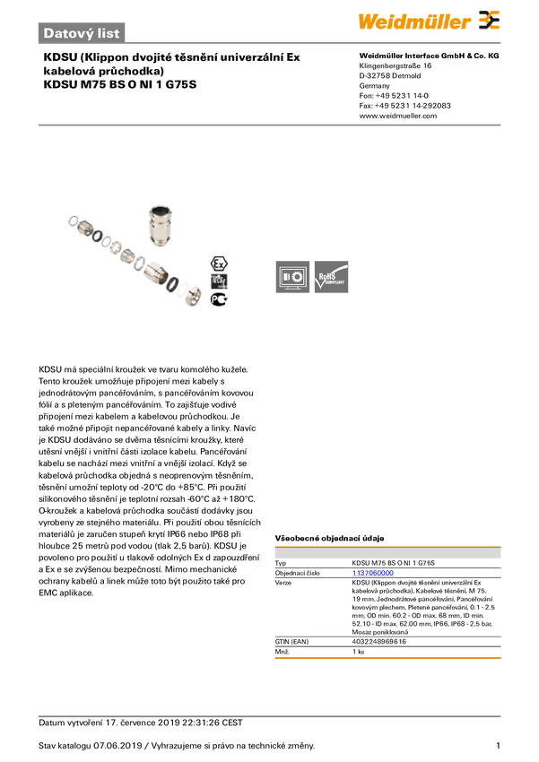 Weidmüller 1137090000 Dławnica kablowa M75 mosiądz mosiądz 1 szt.