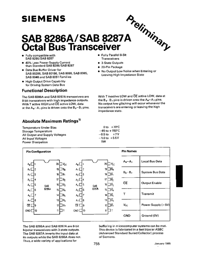 8 BIT BUS TRANSCEIVER SAB8287A-P Siemens
