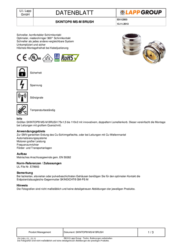 LAPP 53112503 Dławnica kablowa SKINTOP® MS-M BRUSH 90X2, od 66 mm, do 78 mm, M90, 1 szt.