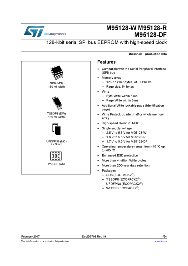 128-Kbit serial SPI bus EEPROM with high speed clock 105°C operation