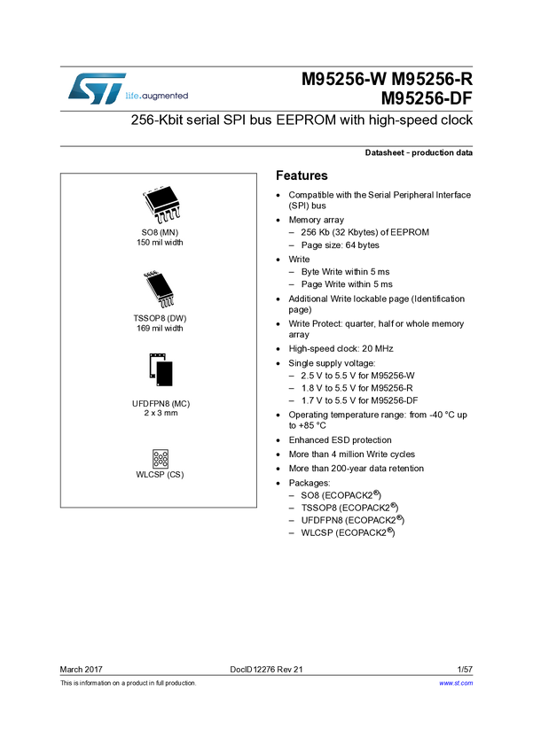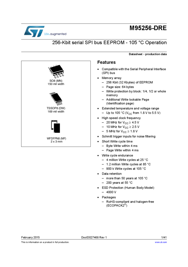 256-Kbit serial SPI bus EEPROM with high speed clock 105°C operation