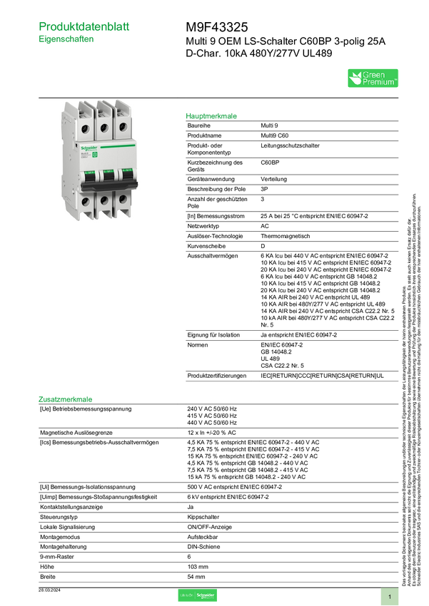 Schneider Electric M9F43325 Wyłącznik automatyczny