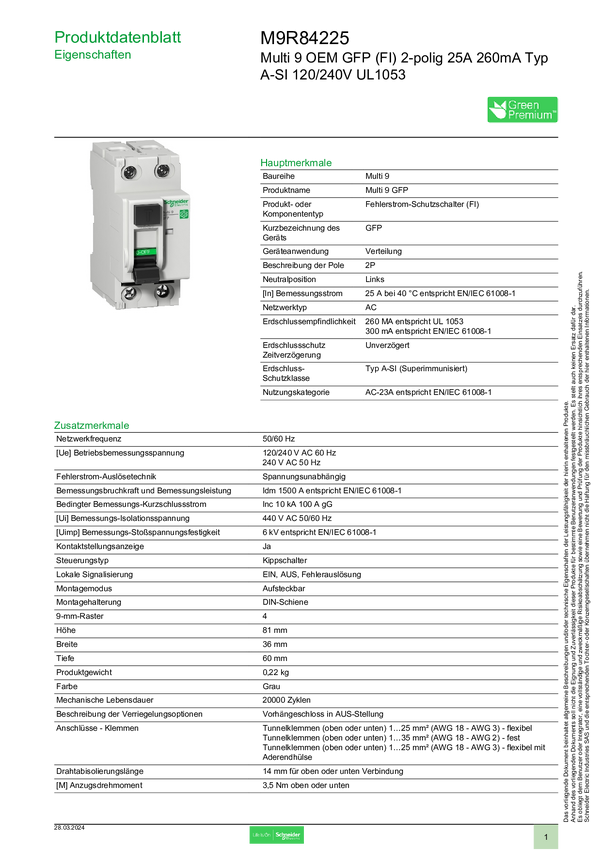 Schneider Electric M9R35240 Wyłącznik różnicowoprądowy A 40 A 0.3 A