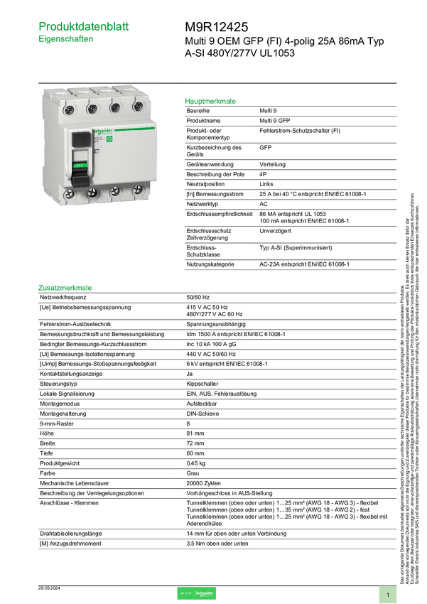 Schneider Electric M9R12425 Wyłącznik różnicowoprądowy A 25 A