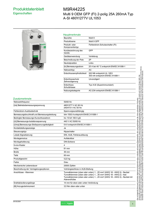 Schneider Electric M9R44225 Wyłącznik różnicowoprądowy A 25 A