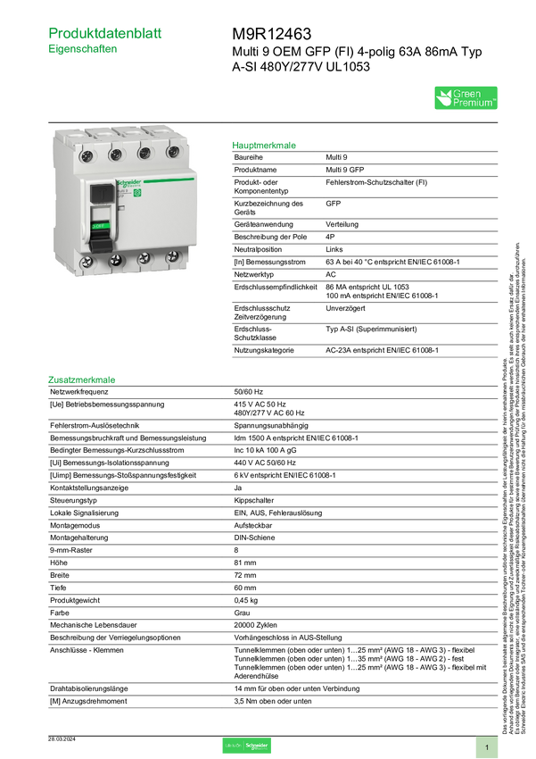 Schneider Electric M9R12463 Wyłącznik różnicowoprądowy A 63 A