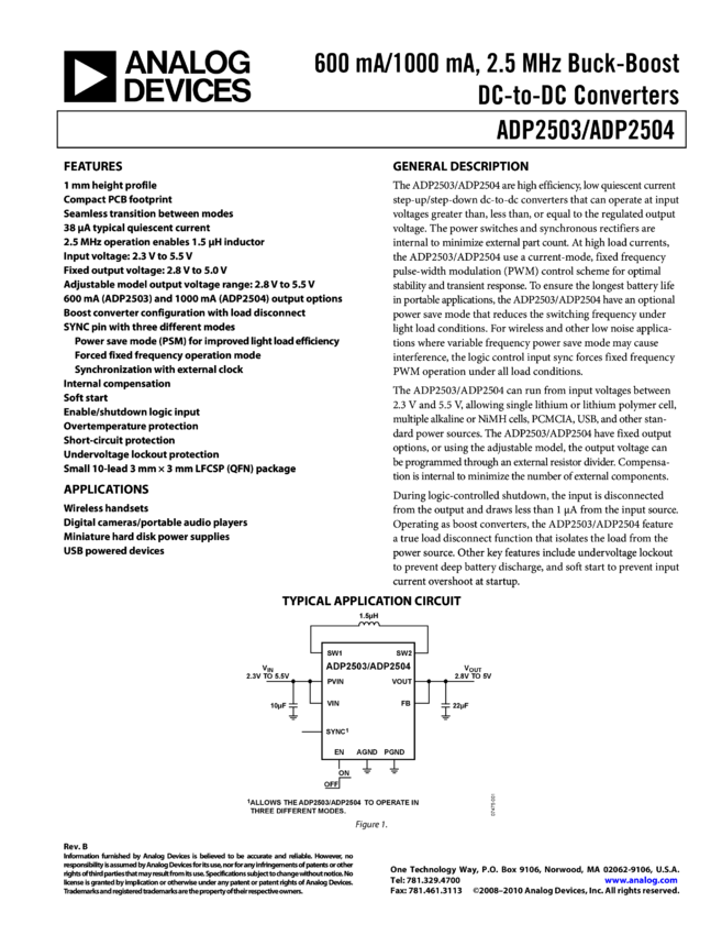 ADP2504: 1000 mA, 2.5 MHz Buck-Boost DC-to-DC Converter
