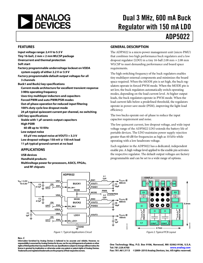 ADP5022: Dual 3 MHz, 600 mA Buck Regulator with 150 mA LDO