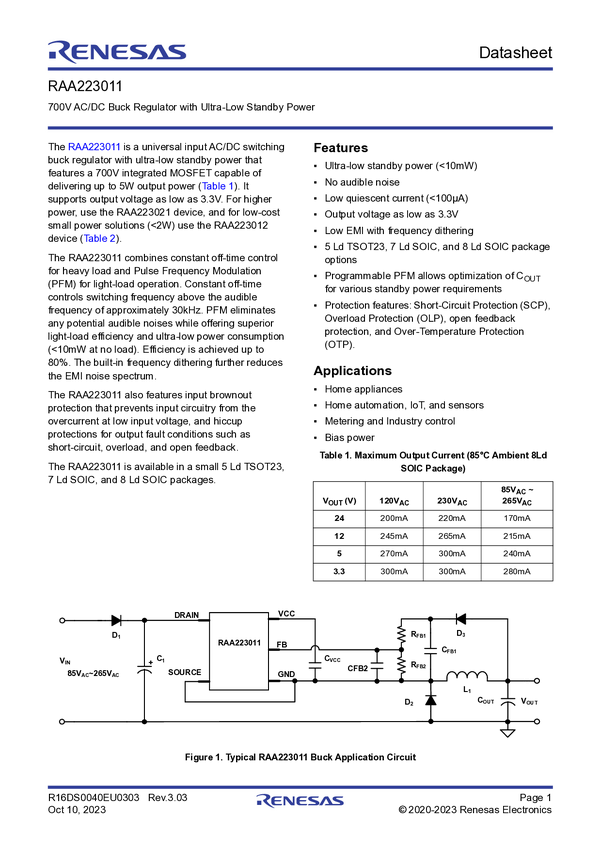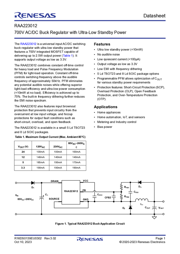 700V AC/DC Regulator with Ultra-Low Standby Power and up to 2.5W Output Power