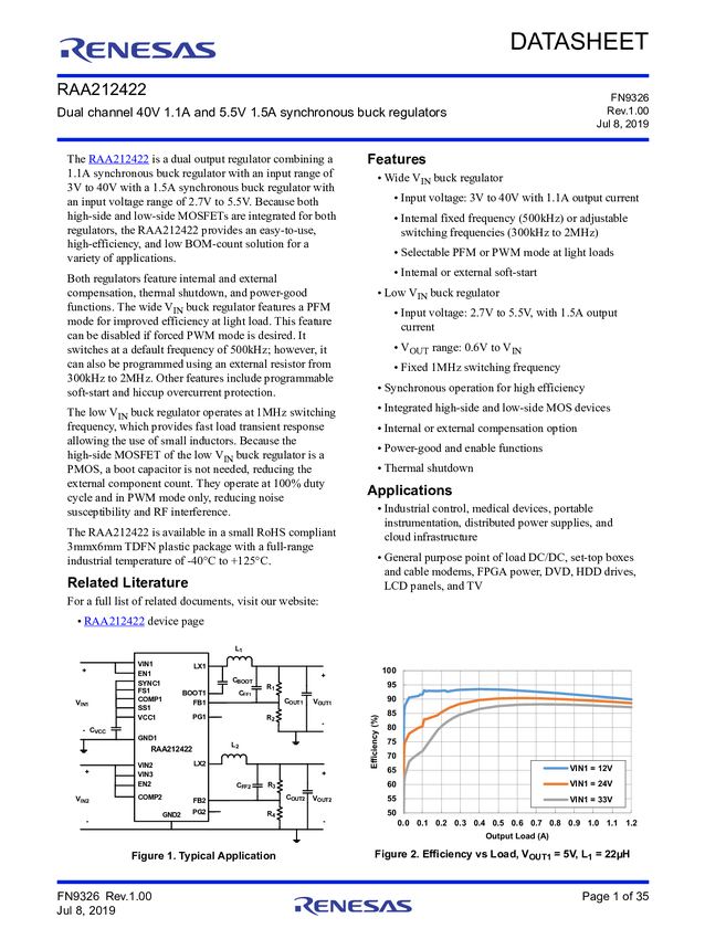 Wide VIN 1.1A with Low VIN 1.5A Synchronous Buck Regulators