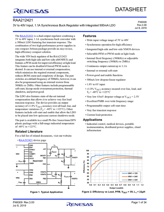 3V to 40V Input, 1.2A Synchronous Buck Regulator with Integrated 500mA LDO