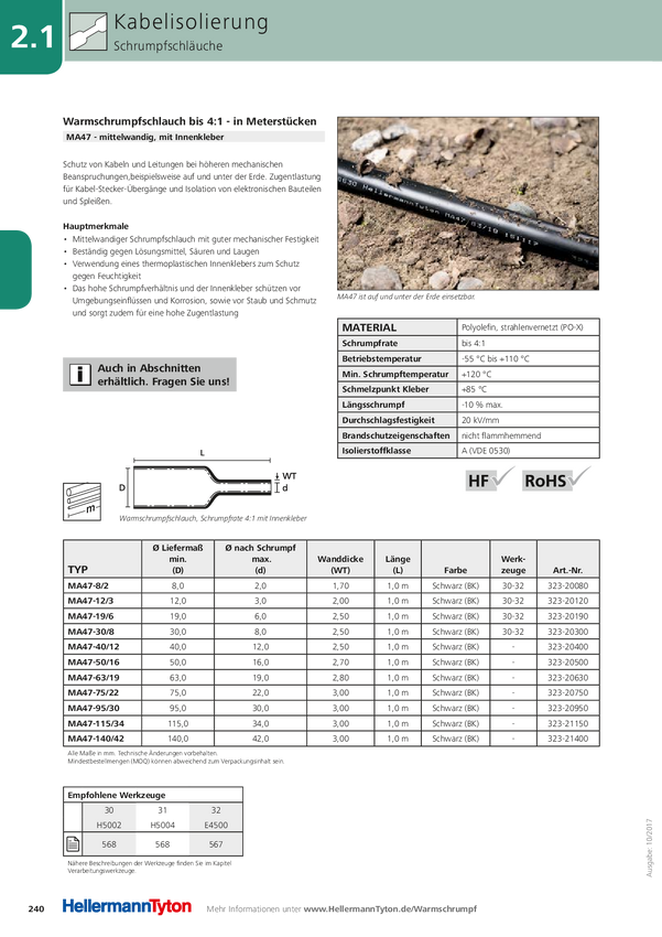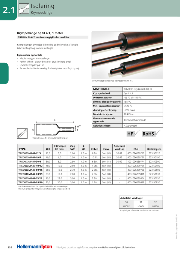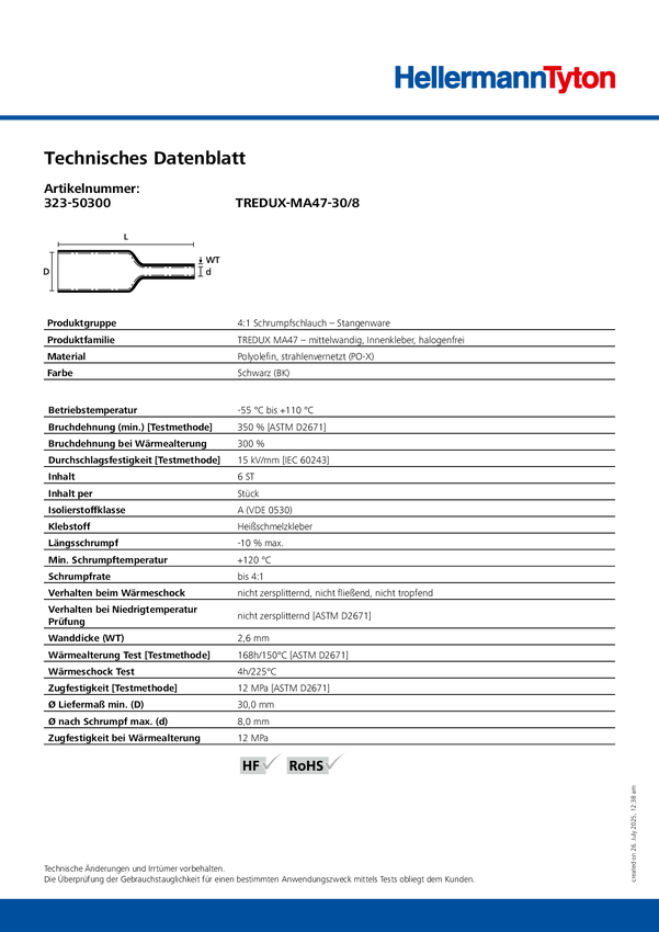 HellermannTyton 323-50300 Rurka termokurczliwa z klejem TREDUX-MA47-30/8-PO-X-BK, 4:1, od 30 mm do 8 mm, 1 m