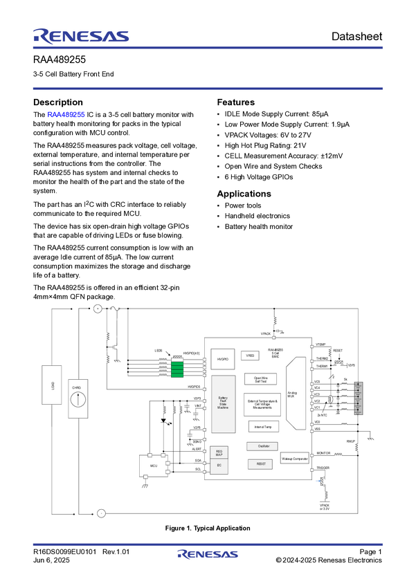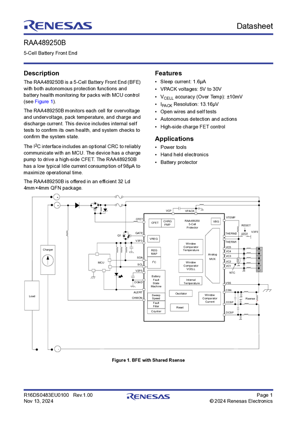 5 Cell Li-ion Battery Front End with I²C Interface & Autonomous Protection
