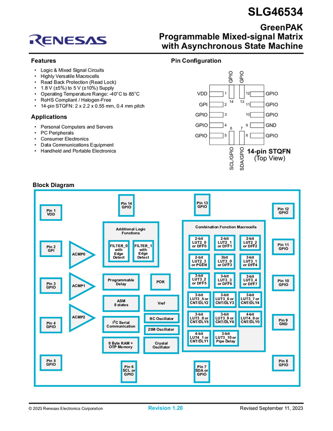 GreenPAK Programmable Mixed-signal Matrix with Asynchronous State Machine
