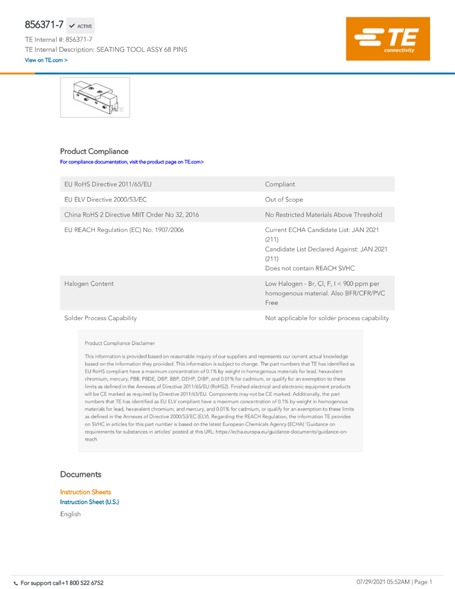 TE Connectivity TE AMP Insertion Machines 856371-7