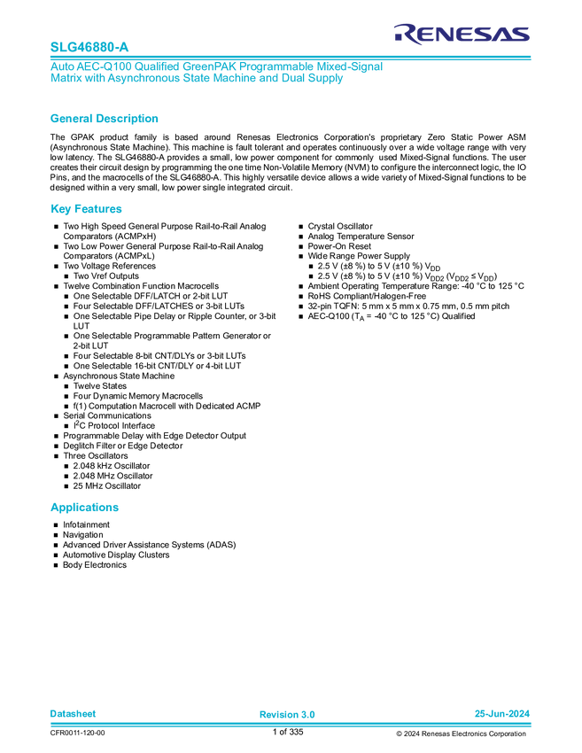 Automotive GreenPAK Programmable Mixed-signal Matrix with Asynchronous State Machine and Dual Supply