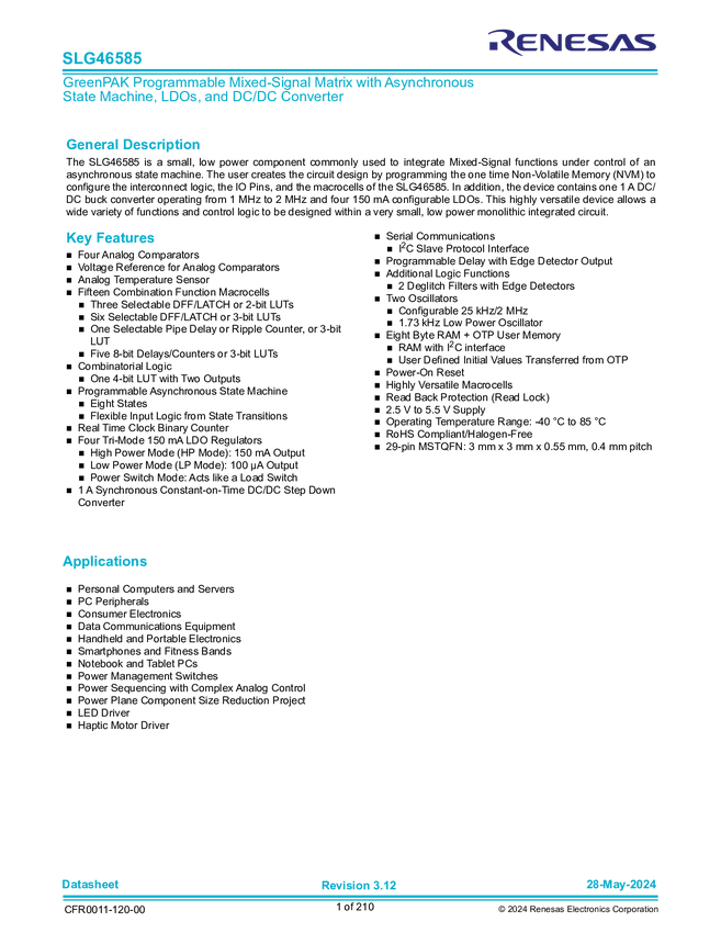 GreenPAK Programmable Mixed-signal Matrix with Asynchronous State Machine and LDOs