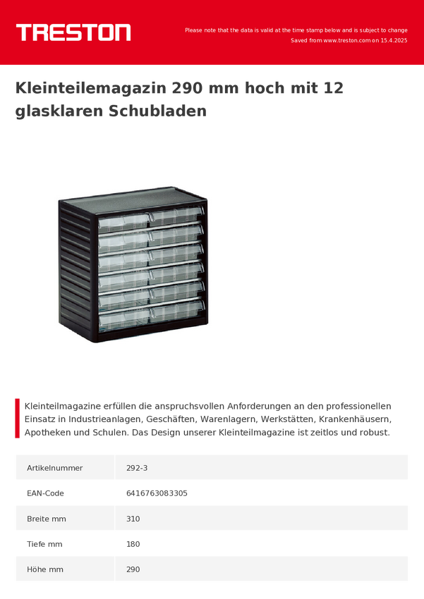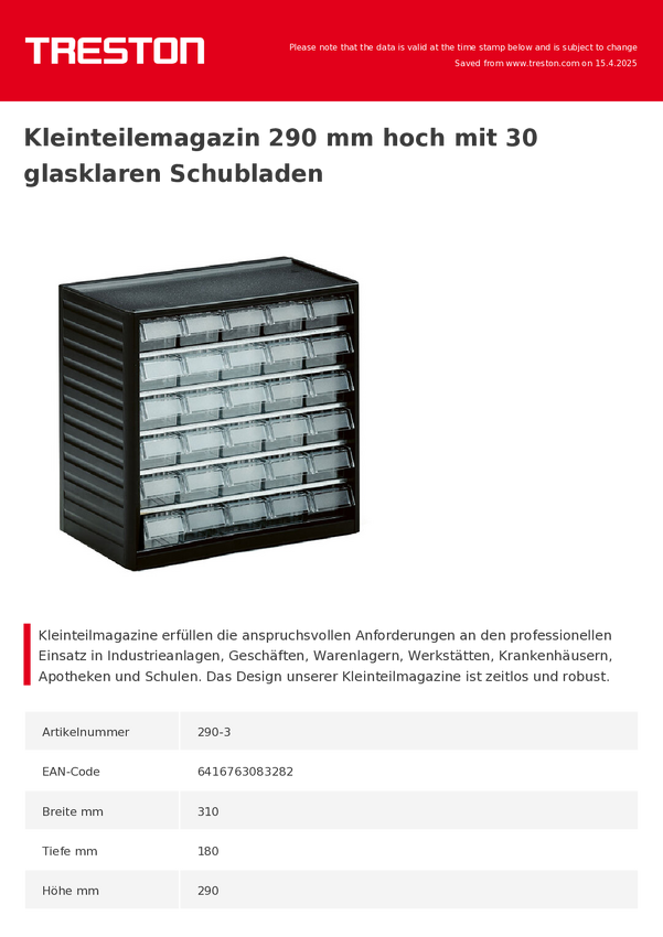 Treston 290-3 produkt uniwersalny Magazynek na małe części (D x S x W) 180 x 310 x 290 mm antracytowo-szary 1 szt.