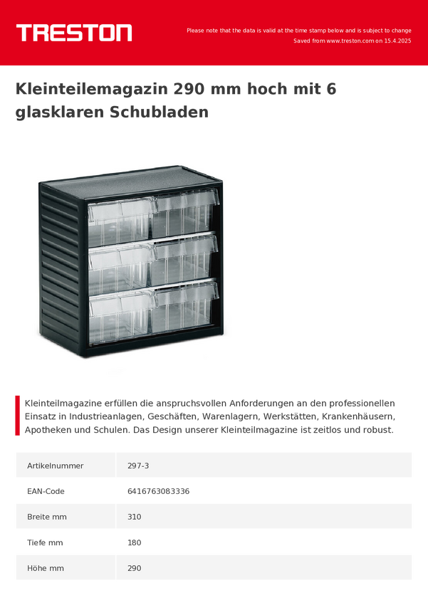 Treston 297-3 produkt uniwersalny Magazynek na małe części (D x S x W) 180 x 310 x 290 mm antracytowo-szary 1 szt.