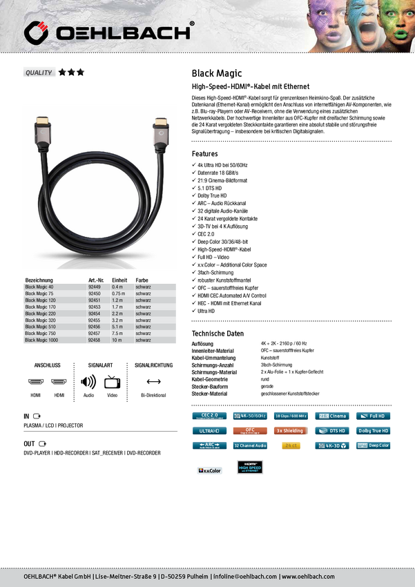 Kabel HDMI Oehlbach Black Magic E 92458, HDMI-A do HDMI-A, 10.00 m