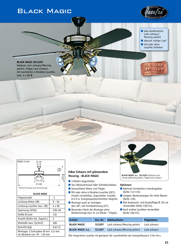 CasaFan Black Magic Wentylator sufitowy 56 W (Ø x W) 132 cm x 335 mm czarny tryb zimowy
