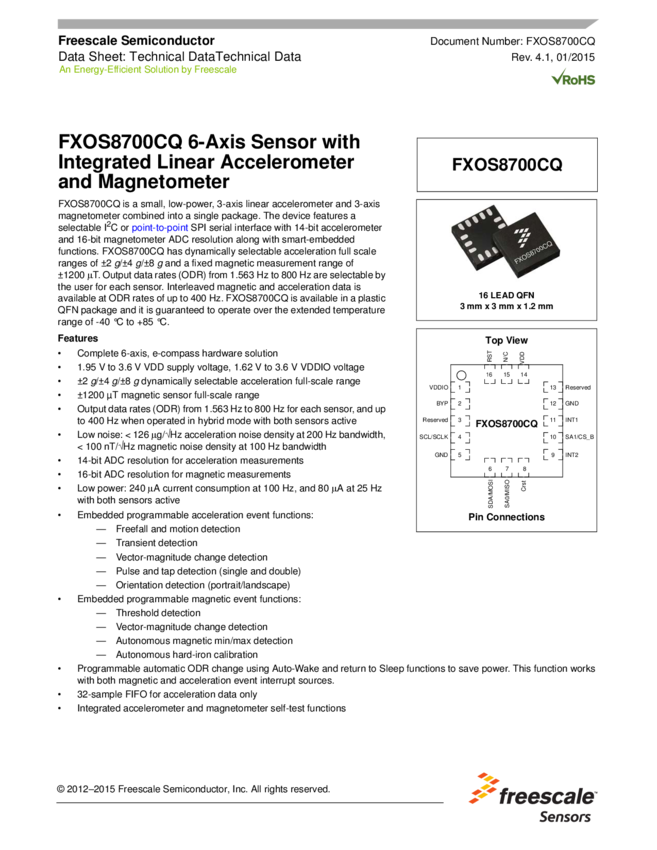 FXOS8700CQ, 6-Axis NXP Sensor with Integrated Linear Accelerometer and Magnetometer