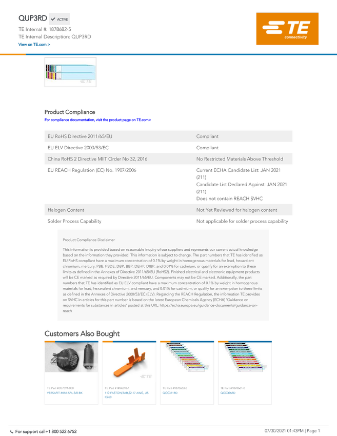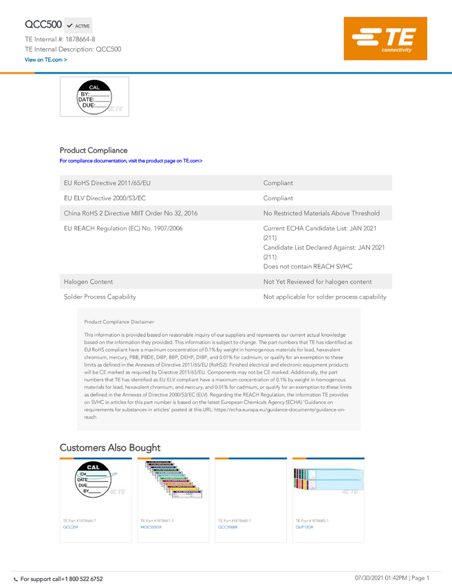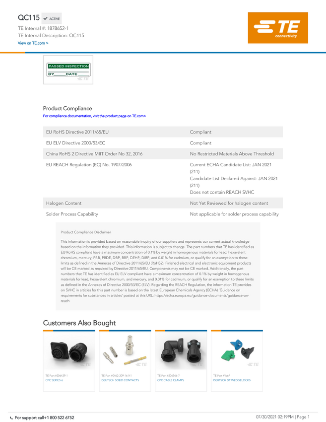 TE Connectivity 1878664-8 TE AMP Inspection&Maintenance Labels