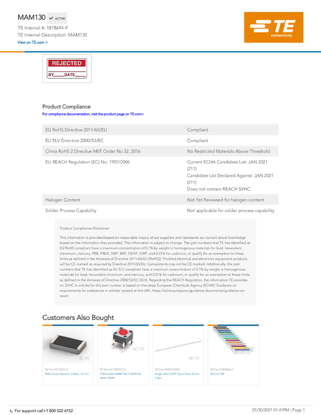 TE Connectivity 1878644-9 TE AMP Inspection&Maintenance Labels