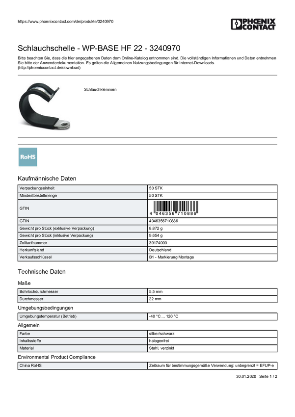 Phoenix Contact Opaska zaciskowa na wąż WP-BASE HF 22 3240970 Maksymalna średnica wiązki 22 mm 50 szt.