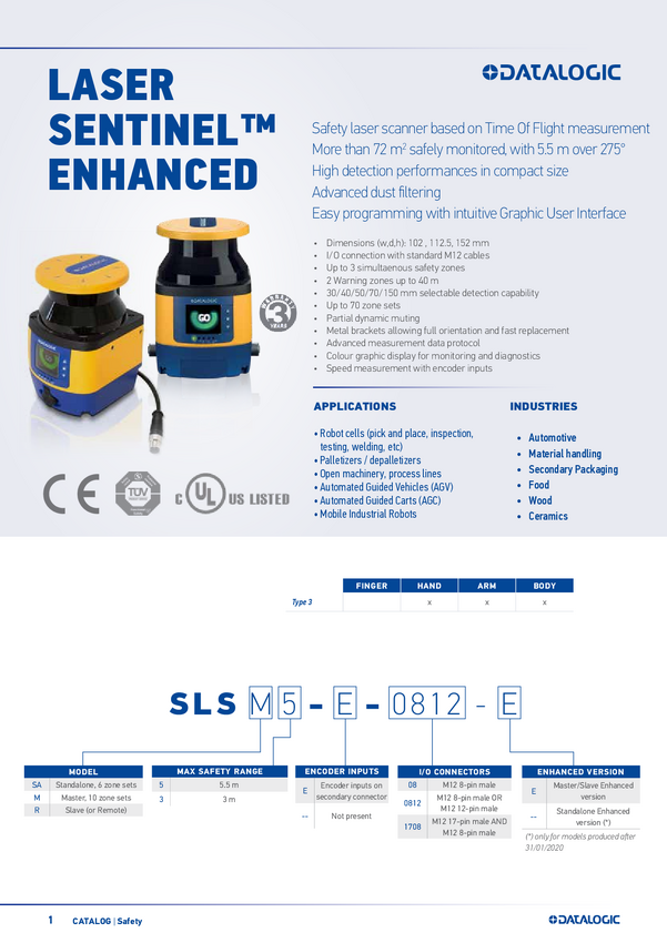 Datasensing Skaner laserowy SLS-R3-E Maksymalny zasięg 3 m Wysokość ochronna 3 m 24 V/DC