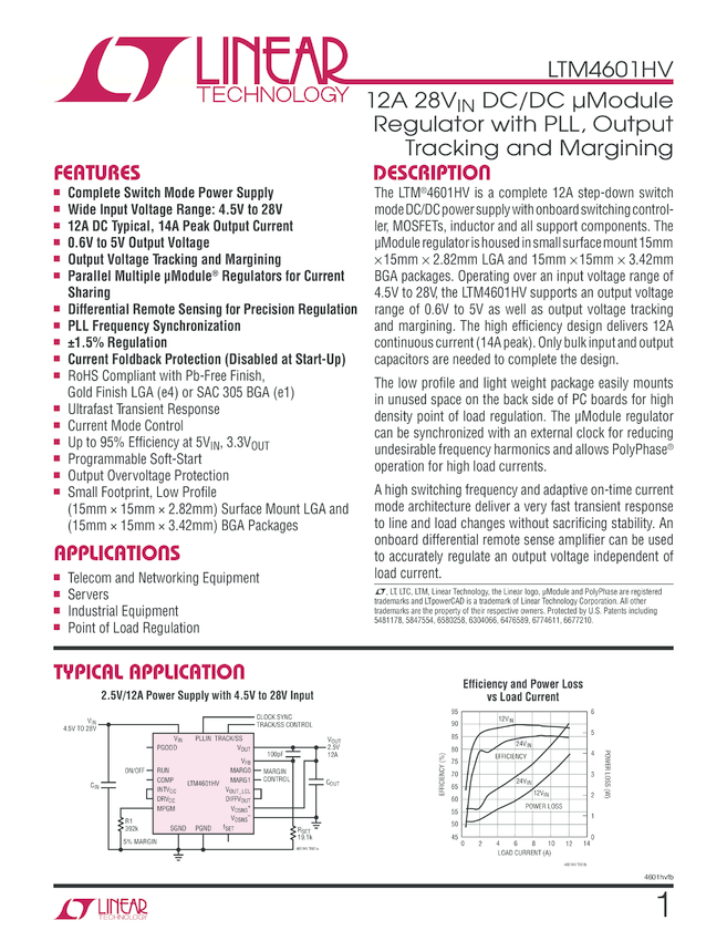 12A, 28VIN DC/DC uModule Regulator with PLL, Output Tracking and Margining