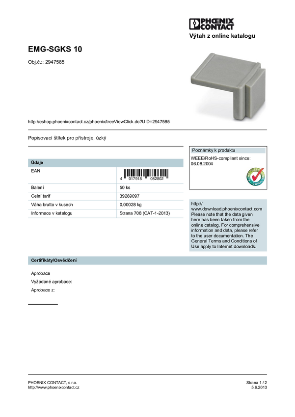 Marking material EMG-SGKS 10 EMG-SGKS 10 Phoenix Contact 2947585 EMG-SGKS 10 Phoenix Contact 2947585 EMG-SGKS 10 Phoenix