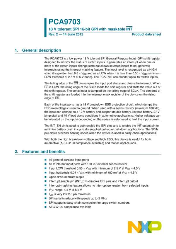 18 V tolerant SPI 16-bit GPI with maskable INT