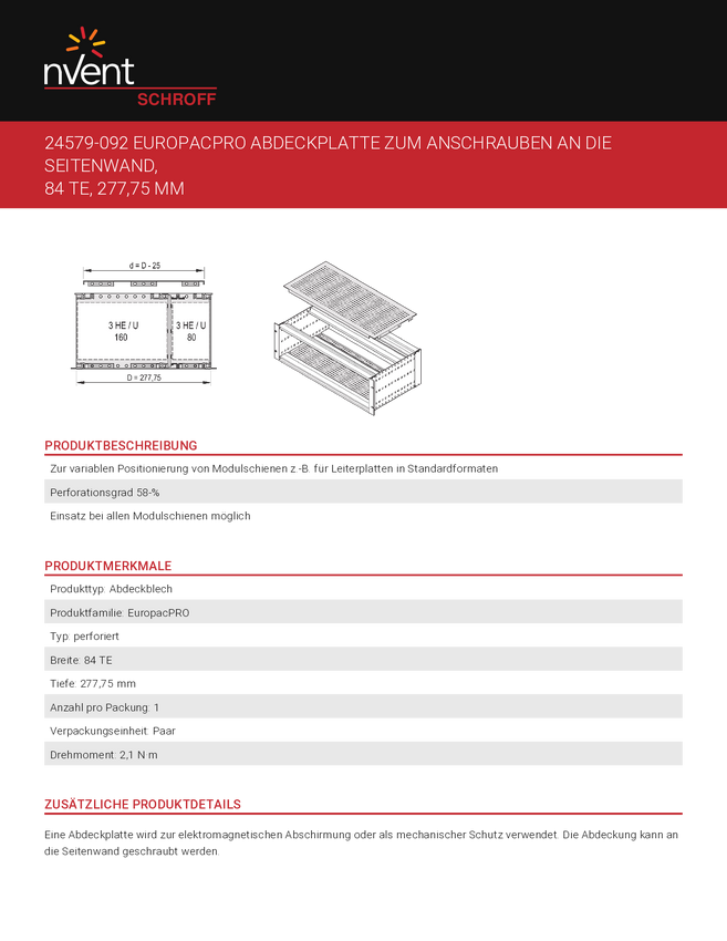 Panel maskujący nVent SCHROFF 24579092 24579092, 1 szt.
