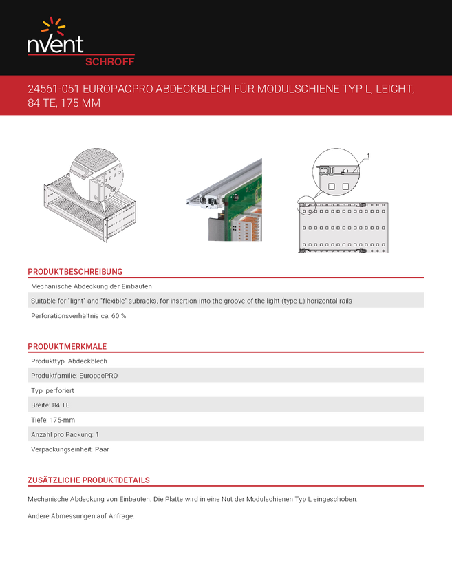 Panel maskujący nVent SCHROFF 24564100 24564100, 1 szt.