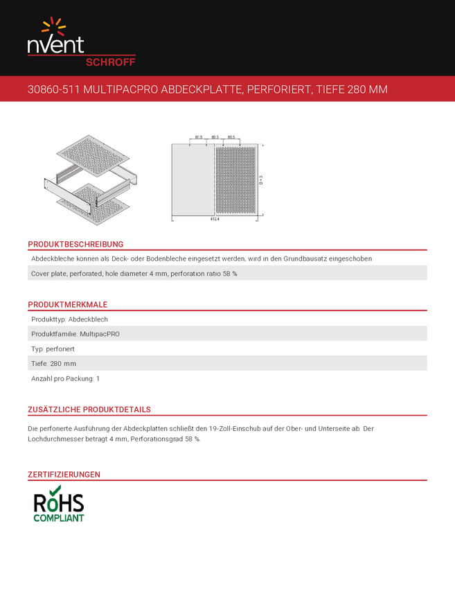 Panel maskujący nVent SCHROFF 27230114 27230114, 1 szt.