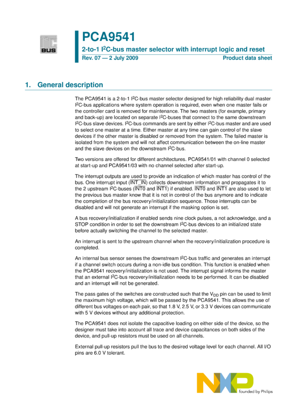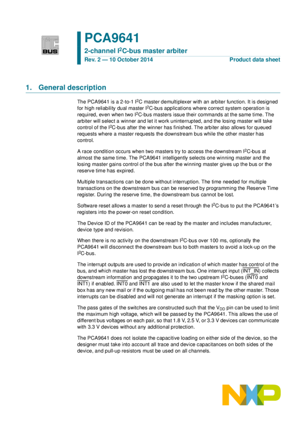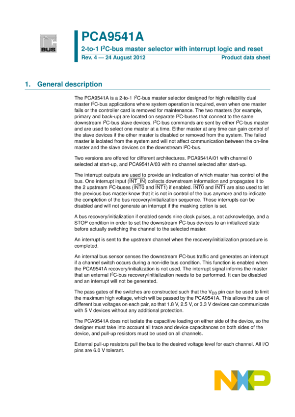 2-to-1 I2C-bus master selector with interrupt logic and reset