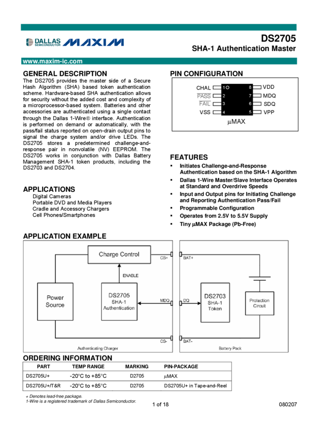 DS2465 DeepCover Secure Authenticator with SHA-256 Coprocessor and 1-Wire Master Function