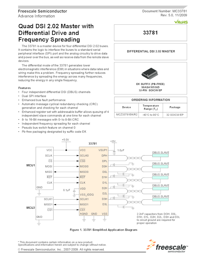 MC33781: Quad DSI 2.02 Master, Differential Drive, Freq Spread