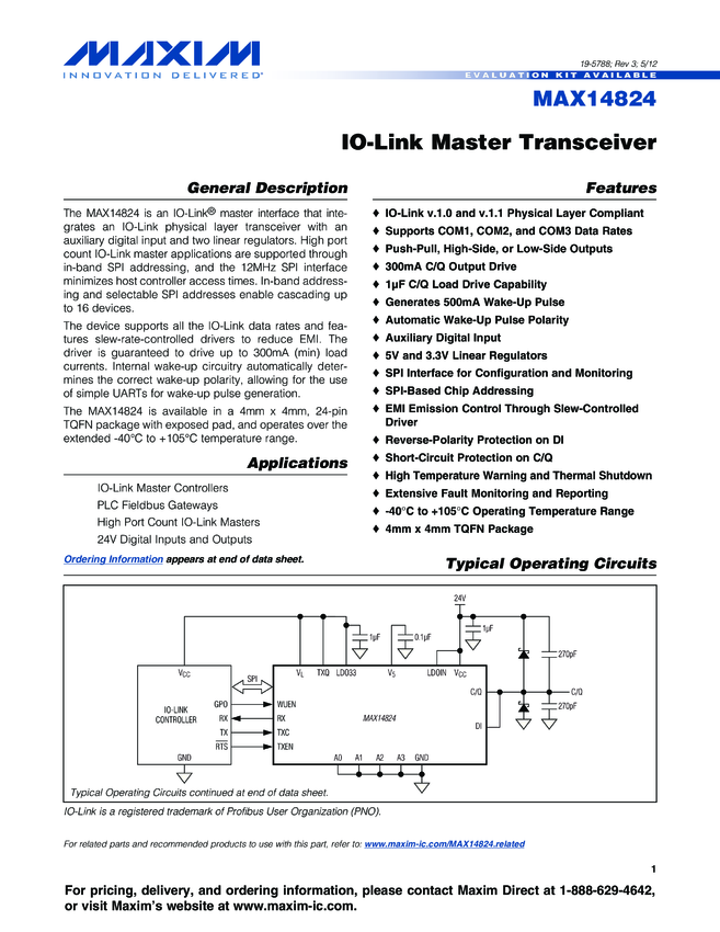 DS2484 Single-Channel 1-Wire Master with Adjustable Timing and Sleep Mode