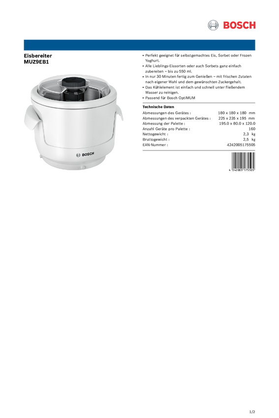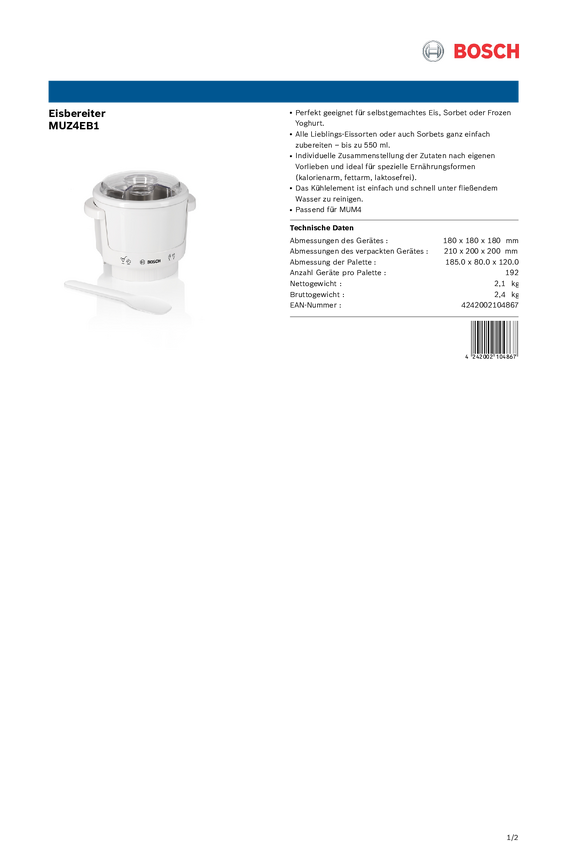 Bosch Haushalt MUZ9EB1 Maszynka do lodów biały