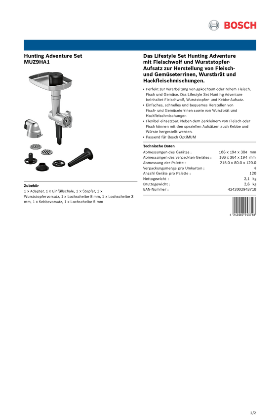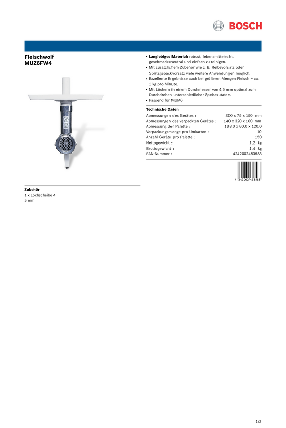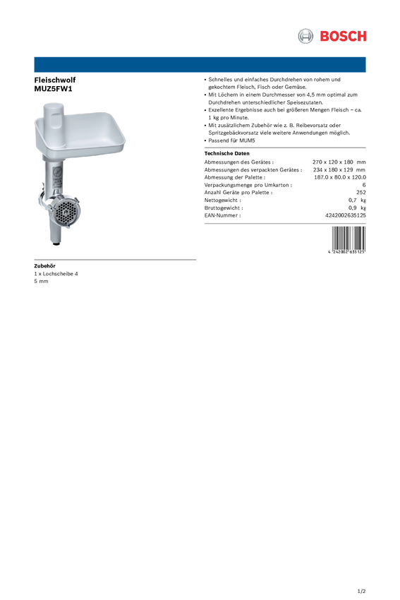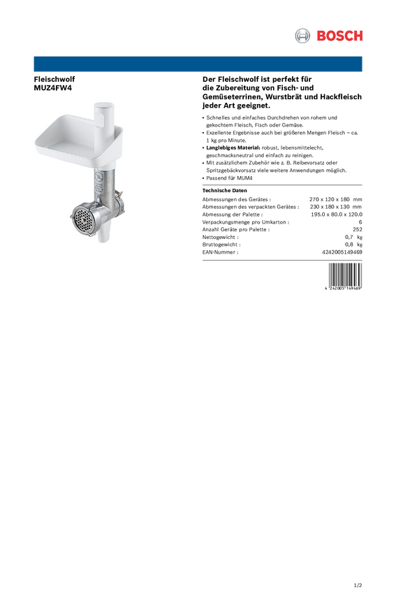 Bosch Haushalt MUZ5FW1 Maszynka do mielenia metal, biały