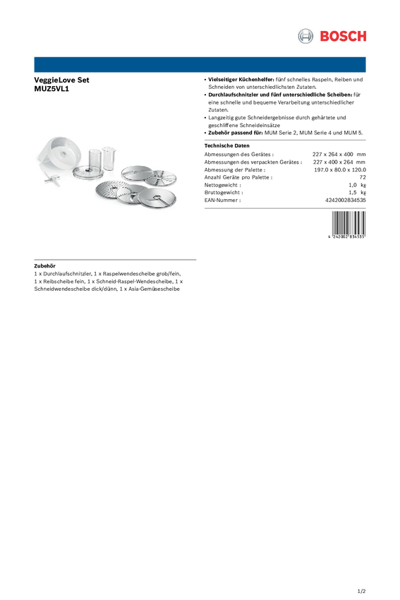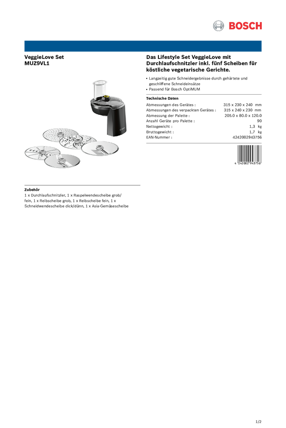 Bosch Haushalt MUZ9VL1 Maszynka do sznycli czarny