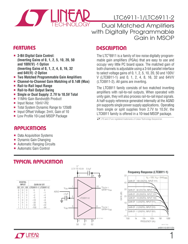 Dual Matched Amplifiers with Digitally Programmable Gain in MSOP