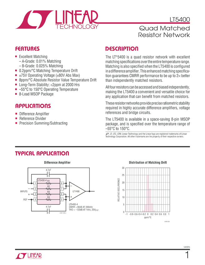 MAX5491 Precision-Matched Resistor-Divider in SOT23