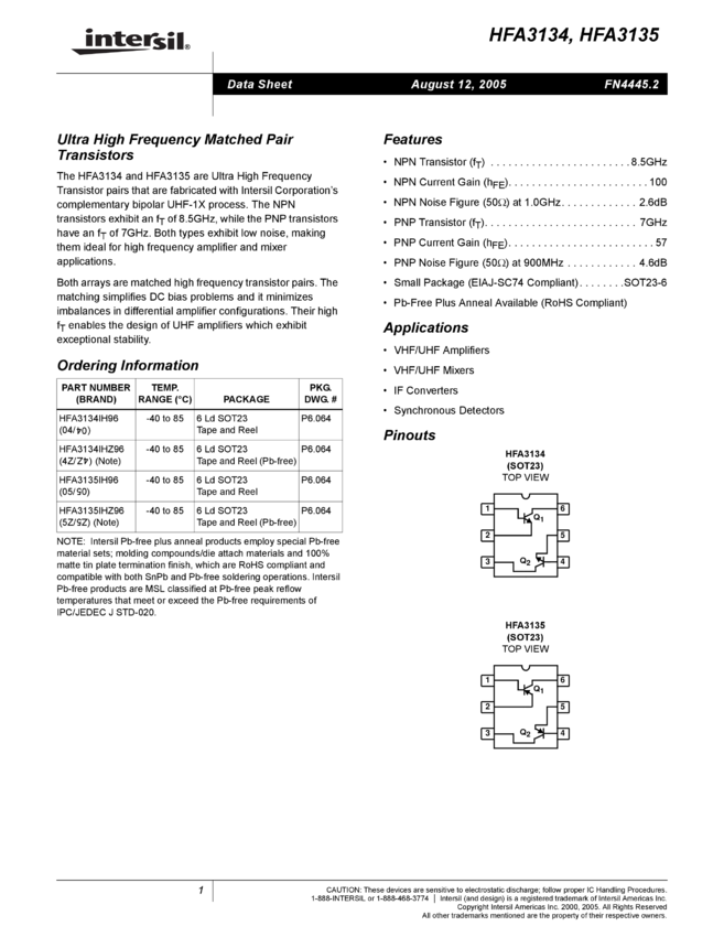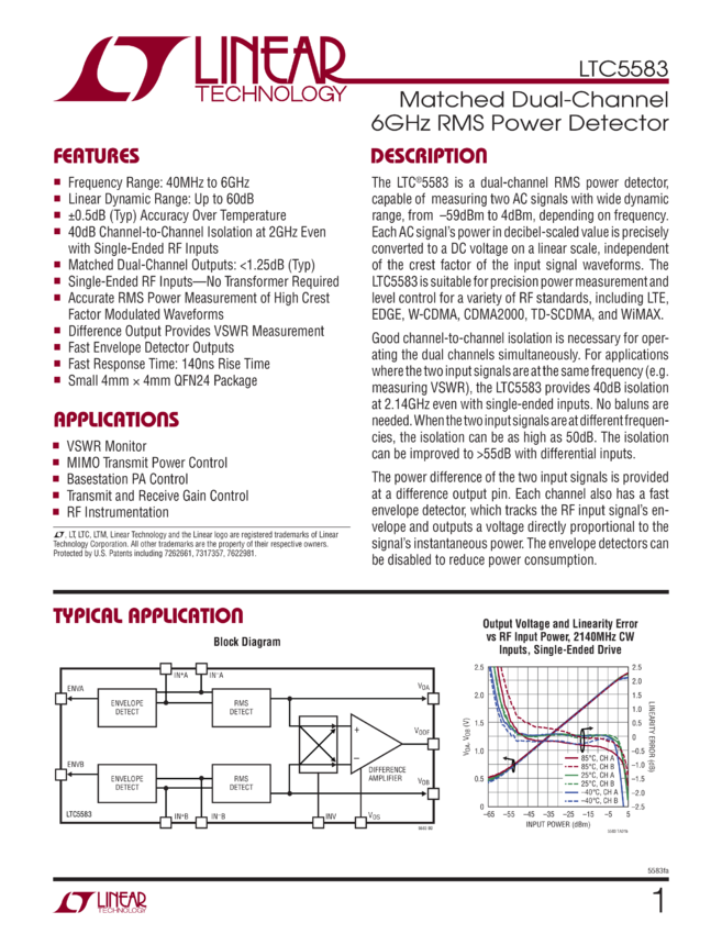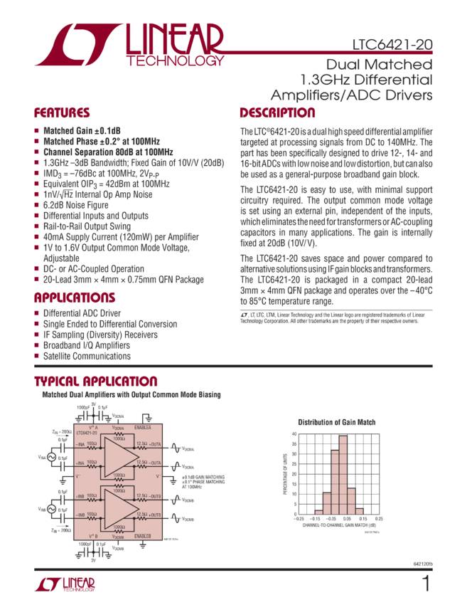 Dual Matched 1.3GHz Differential Amplifiers/ADC Drivers
