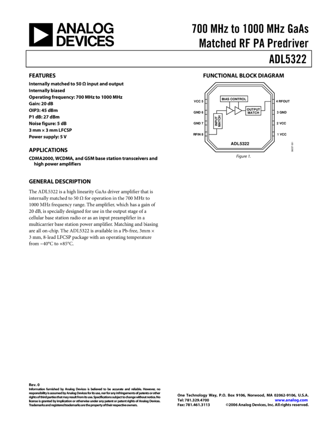 ADL5323: 1700 Matched RF PA Pre-Driver