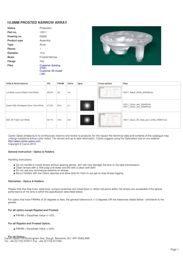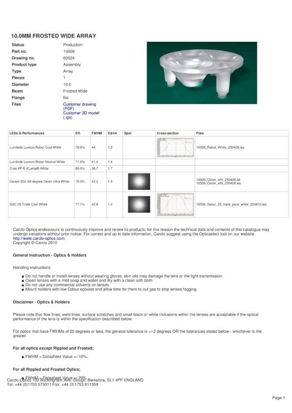 Soczewka Carclo 10509, potrójna, matowa, szeroka, do diod Cree serii XP-E, średnica 20 mm, FWHM (XP-E): 36,7 stopni