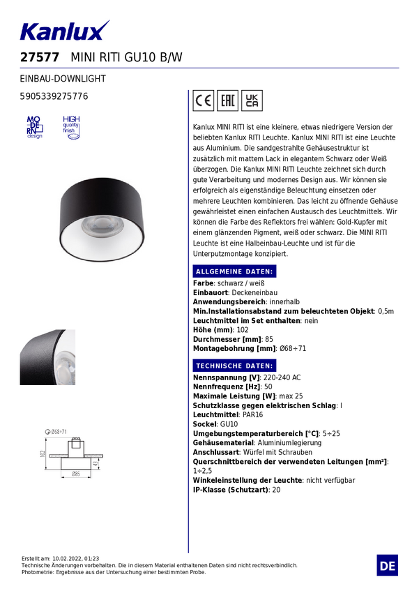 Lampa sufitowa Kanlux Riti 27577 czarny (matowy), biały (matowy)
