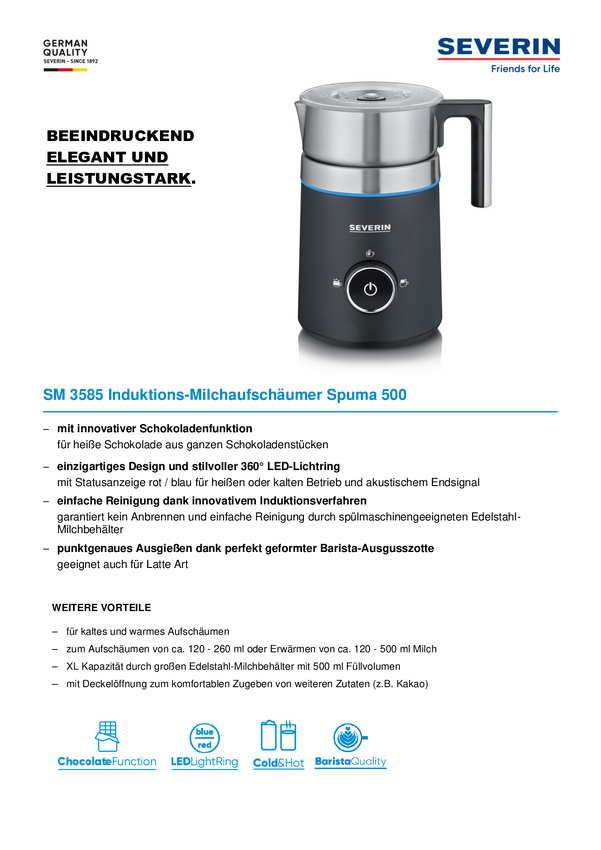 Severin SM 3585 SM 3585 Spieniacz do mleka stali szlachetnej (szczotkowanej), czarny (matowy) 500 W